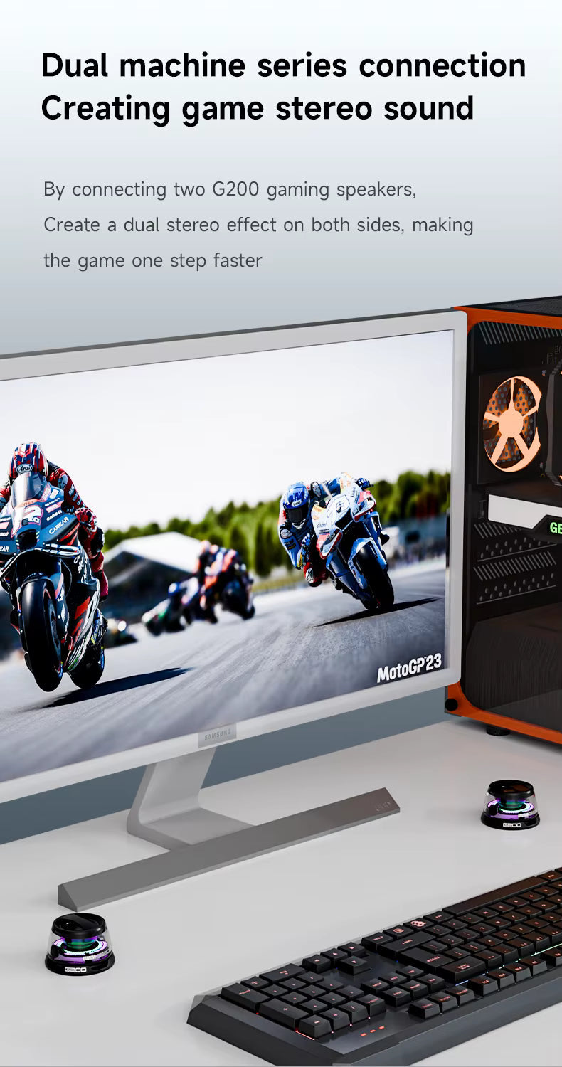 4. Double machines are connected in series to create game stereo, and the left and right dual stereo effects are created by connecting two G200 e-sports speakers, making the game faster..